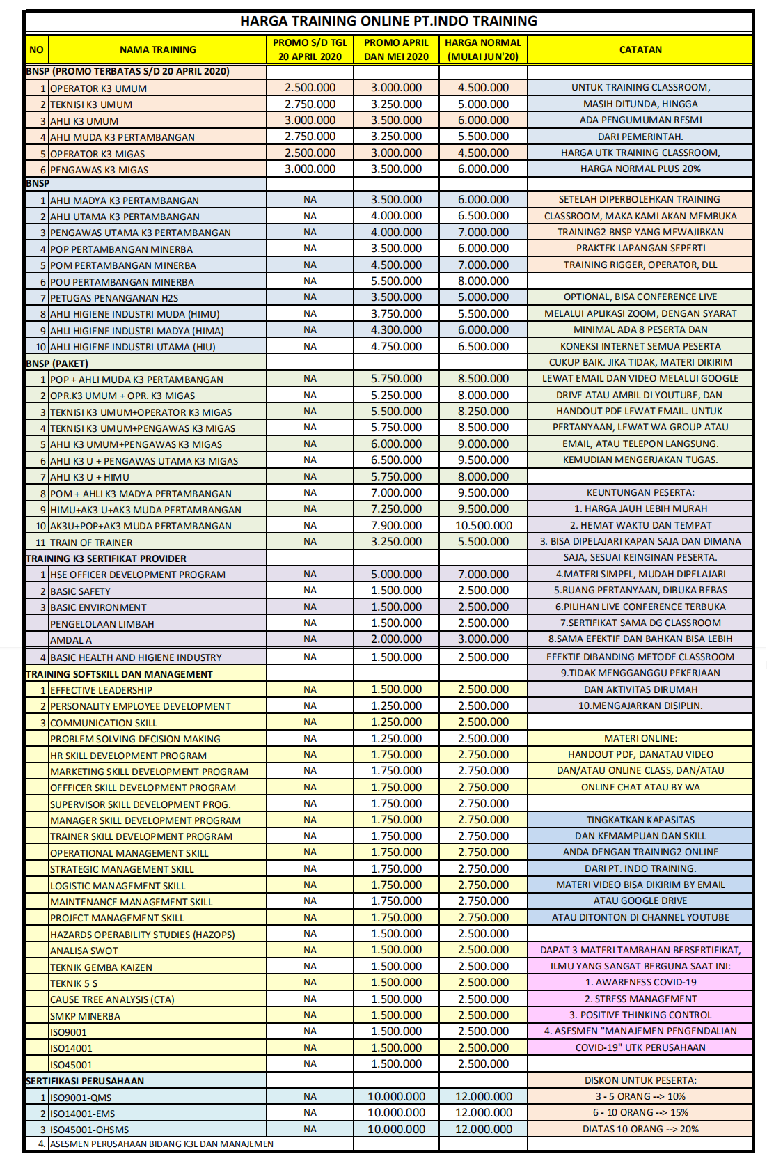 Download Harga Online Training