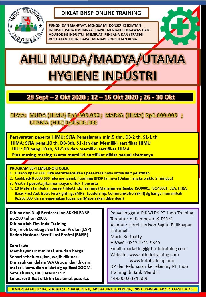 2. Dapat menjadi pengawas dan advisory K3 Industri